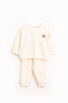 Çocuk İkili Takım – Krem Ayıcık Nakışlı Waffle Kumaş