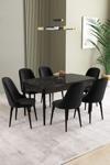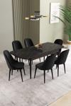 Asaella Mobilya Ikon Siyah Mermer 80x132 Açılabilir Mdf Masa Yemek Odası Takımı, Mutfak Takımı 6 Adet Sandalye