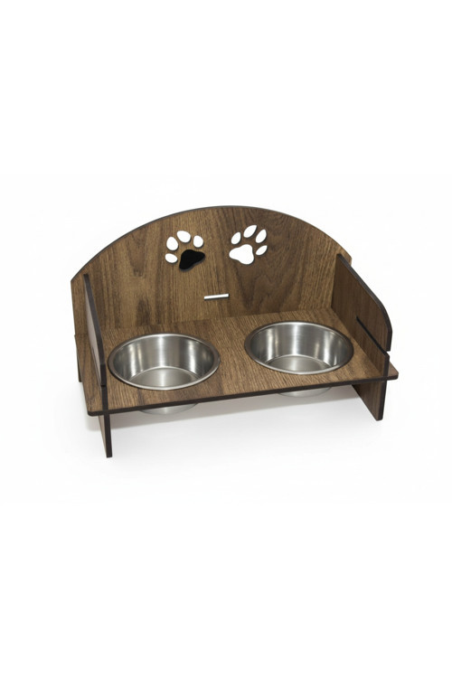 İkonixpet Yüksek Kedi Mama Kabı Ve Köpek Su Kabı Standı - Ahşap, Lazer Patili, Çelik Kaseli, Ergonomik