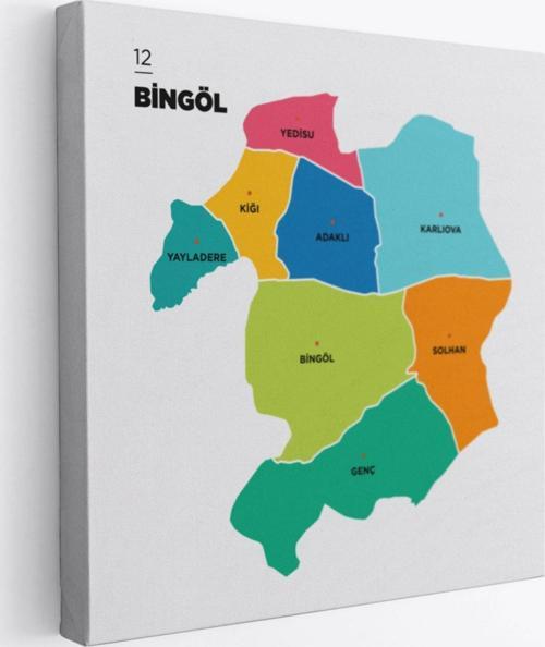 İl ve İlçeler Haritası Bingöl, Modern Dekoratif Kanvas Tablo, Duvar Dekoru 1294