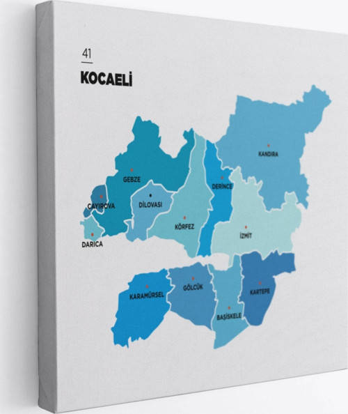 İl ve İlçeler Haritası Kocaeli, Modern Dekoratif Kanvas Tablo, Duvar Dekoru 1402