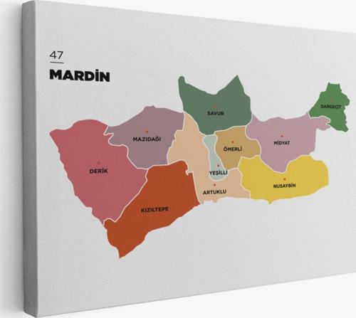 İl ve İlçeler Haritası Mardin, Modern Dekoratif Kanvas Tablo, Duvar Dekoru 1416