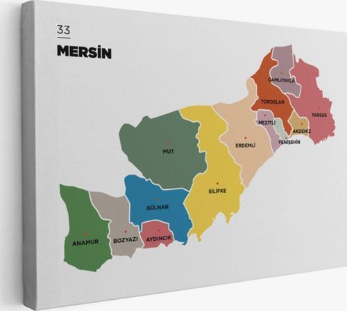 İl ve İlçeler Haritası Mersin, Modern Dekoratif Kanvas Tablo, Duvar Dekoru 1419