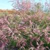 Çiçekleri uzun salkımlar halinde, küçük ve pembe renklidir.