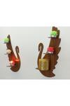 İlk Hediyem 2'Li Ceviz Renkli Kuğu Dekoratif Ahşap Mumluk Seti