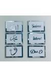 İLK HEDİYEM Aynalı Gümüş-Silver Arapça Allah,Muhammed,Vav ve Türkçe Sabret,Şükret ve Dua et Seti her bir parçası 13 X 20 cm ebatında olan toplam 6 parçadan oluşmaktadır Altı parçadan oluşan set, İslami öğretileri hatırlatmak için ideal bir hediye seçeneği olarak öne çıkar.