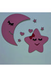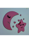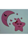 Ürün 1 adet pembe gülen ay ve 1 adet gülen yıldızdan kalp ve küçük yıldızlardan oluşmaktadır