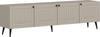 Kapaklı bölmeleri sayesinde televizyon ekipmanları, kitaplar ya da dekoratif objeler için geniş bir saklama alanı sağlar. Yerden yüksek ayaklı tasarımı, temizlik kolaylığı sunar ve robot süpürgeyle tam uyum sağlar.