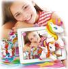 Yapbozu tamamlayıp kartondan desenleri üzerine koyun ve unicornların hareketlerini izleyin.