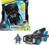 Batman, Imaginext DC Super Friends Bat-Tech Batmobil aracı ile Gotham City'nin hem sokaklarını hem de göklerini kötülerden koruyabilir. Çocuklar Batman'i sürücü koltuğuna yerleştirip tetiğe bastığında araç, uçak moduna dönüşür ve figürün göğsündeki ışıklar yanar. Uçuyoruz! Süper Kötüler görüş alanınıza girmeye başladığında gizli fırlatıcıdaki diskleri fırlatmak için tetiğe basın. Bu kötü adamların kaçacak hiçbir yeri yok!