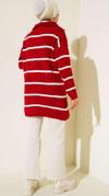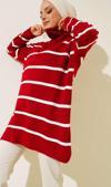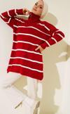 İmaj Butik Ekru Kahverengi Cizgi Yaka Fermuarlı Triko Tunik