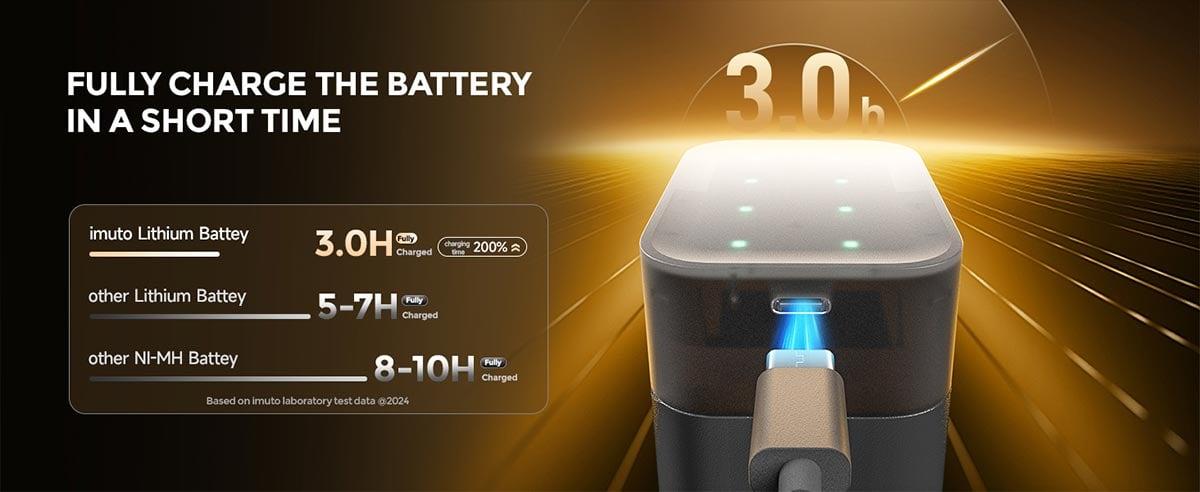 Imuto 3600 mWh AA lityum şarjlı pil seti, yüksek güç tüketimine sahip cihazlara uzun süreli ve kararlı enerji sağlamak üzere geliştirilmiş profesyonel bir çözüm sunar. Sekiz adet yüksek kapasiteli AA pil ve 8 yuvalı hızlı şarj ünitesiyle birlikte gelen bu set; uzun ömürlü performans, pratik kullanım ve gelişmiş güvenlik özellikleriyle hem bireysel hem de profesyonel kullanıcılar için ideal bir deneyim oluşturur. Şık ve kompakt şarj kutusu, pilleri yalnızca hızlı şekilde şarj etmekle kalmaz, aynı zamanda güvenli biçimde saklamanıza ve kolayca yanınızda taşımanıza da olanak tanır.