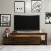 Beliz Modern LED Işıklı 3 Kapaklı, Raflı TV Sehpası – 192 cm, Ceviz