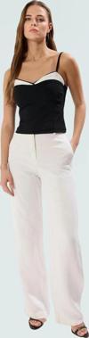Bu şık bluz, %98 Polyester ve %2 Elastan karışımı bir kumaştan üretilmiştir. Bu sayede hem dayanıklı hem de yumuşak bir yapıya sahiptir. Fitted kalıbı vücuda tam otururken, ince askıları hareket özgürlüğünüzü kısıtlamaz. Renk blokları ve dantelli detaylar ise, bluza modern bir görünüm katmaktadır. Astarsız yapısıyla hafif ve rahattır. Regular boyu, farklı vücut tiplerine uyum sağlar. Scuba krep dokuma tipi ise, kumaşın nefes alabilir olmasını sağlar.