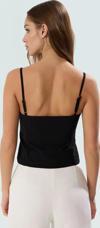 Yaz aylarının vazgeçilmez parçası olacak bu siyah bluz, şıklığı ve rahatlığı bir araya getiriyor. İnce askılı tasarımıyla sıcak günlerde serin kalırken, fitted kalıbıyla vücudunuzu mükemmel bir şekilde sarar. Yüksek kaliteli polyester ve elastan karışımından üretilen kumaşı, nefes alabilir ve gün boyu konfor sunar. Bluzun ön kısmındaki renk blokları ve zarif dantel detayları, bluza modern ve sofistike bir hava katıyor. Basic silüetiyle her türlü alt giyimle kolayca kombinlenebilir, günlük kullanımdan gece davetlerine kadar her ortamda şık görünmenizi sağlar. Bakımı oldukça kolaydır; makinede yıkanabilir ve düşük ısıda ütülenebilir. Bu yazın trend renklerinden siyah renkteki bluzumuz ile tarzınızı konuşturun!