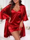 İnce Askılı Kırmızı Saten 2'li Gecelik Sabahlık Takımı
