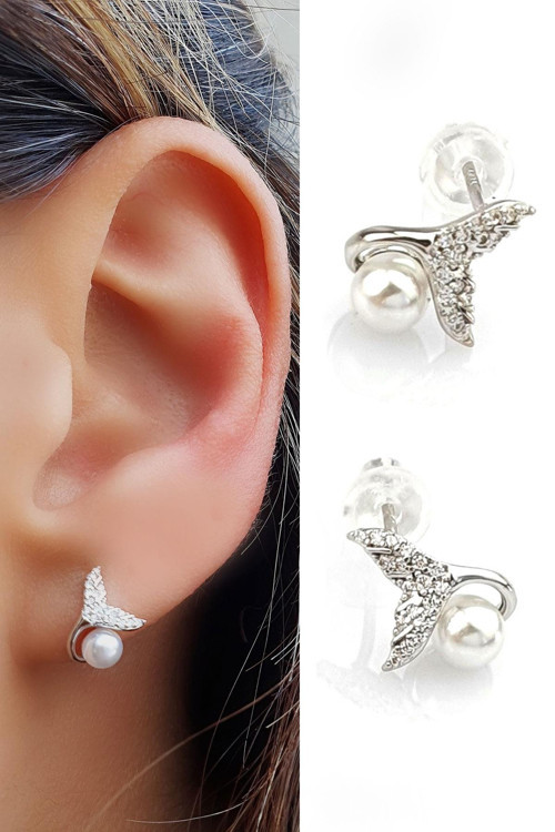 İnci Detaylı 925 ayar Gümüş Balık Kuyruğu Tasarım Küpe