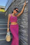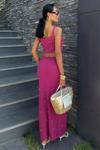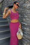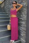 - Zarif inci ve çiçek detaylarıyla süslenmiş, şıklığı ve rahatlığı bir arada sunan büstiyerli triko takım.; - Mürdüm rengiyle göz alıcı bir görünüm kazandırırken, düz deseniyle zamansız bir tarz oluşturur.; - Regular kalıp sayesinde her vücut tipine uyum sağlayarak konforlu bir kullanım imkanı tanır.; - Triko kumaşı ile yumuşak dokunuşu ve dayanıklılığı bir arada sunar; uzun süreli kullanım için idealdir.; - Uzun boy tasarımıyla bacakları olduğundan daha uzun gösterirken, kolsuz kesimi serin günlerde bile şık olmanızı sağlar.; - Cool & comfort persona ile günlük kullanımda rahatlıkla tercih edebileceğiniz bir koleksiyondur.; - Casual koleksiyonun parçası olarak günlük kombinlerinize kolayca adapte olabilirsiniz.; - Bisiklet yakası sayesinde modern ve minimalist bir stil yaratmanıza olanak tanır.; - İki parça halinde gelen bu set, hem bluz hem de etek ihtiyacınızı karşılar ve koordineli bir görünüm sunar.; - 30 derecede makinede yıkama imkanıyla pratik bakım avantajlarından faydalanabilirsiniz.; - %70 pamuk içeriği ile nefes alabilen yapıda olan bu takım, cildinizle dosttur.