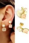 İnci ve pembe kuvars taşlı 925ayar Gümüş Üzerine Altın Kaplama Tasarım Doğal Taş Küpe