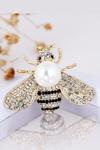 Metal malzeme kullanılarak üretilmiş olup, dayanıklılığı ve parlak görünümüyle öne çıkar.; Arının sembolizmiyle zenginleştirilmiş bu broş, doğanın güzelliğini yansıtan detaylarıyla dikkat çekici bir aksesuar olarak kullanıcısına eşlik eder.; Her yaştan kadının zevkine hitap eden bu zarif broş, özel günlerde ve günlük kullanımda ideal bir tamamlayıcıdır.;