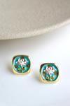 Leostone İncili Kare Pembe Lotus Çiçeği Motifli Kabartma Manzara Tasarım Kadın Çelik Küpe