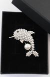 Keeba İncili yunus balığı broş. Taşlı tasarım broş. Yaka iğnesi broş. Kadın broş. Broş. Yunus balığı broş.