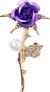Keeba İncili zirkon taşlı mor gül broş. Yaka iğnesi gül broş. İncili taşlı gül broş kadın broş. Gül broş