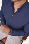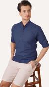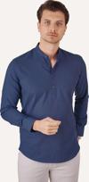 İndigo Hakim Yaka Keten Üç Düğmeli Erkek Gömlek