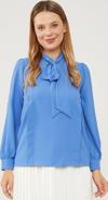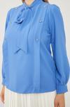 İndigo Kendinden Fular Bağlamalı Şifon Gömlek