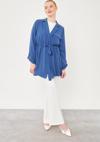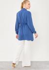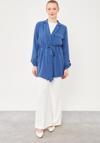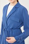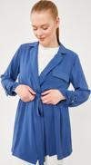 İndigo Kendinden Kemer Bağlamalı Ceket