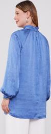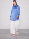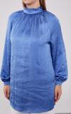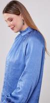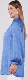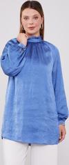 İndigo Yakası Büzgülü Kraş Saten Bluz