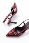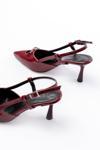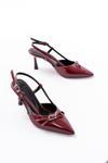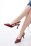 İNF-2300 Bordo Rugan Günlük Arkası Açık Fiyonklu Topuklu Bayan Ayakkabı