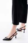 Ellolita İNF-2300 Siyah Rugan Günlük Arkası Açık Fiyonklu Topuklu Bayan Ayakkabı