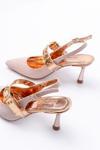 İNF-260 Rose Simli Günlük Arkası Açık Baret Tokalı Topuklu Bayan Ayakkabı