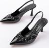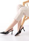 Terzi Bey İNF-40451 Siyah Kırışık Rugan Günlük Arkası Açık Topuklu Bayan Ayakkabı