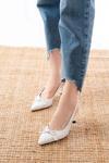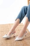 Terzi Bey İNF-4500 Beyaz Rugan Günlük Arkası Açık Fiyonklu Topuklu Bayan Ayakkabı