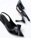 ZenaLook İnf-4501 Siyah Rugan Günlük Arkası Açık Fiyonklu Topuklu Bayan Ayakkabı