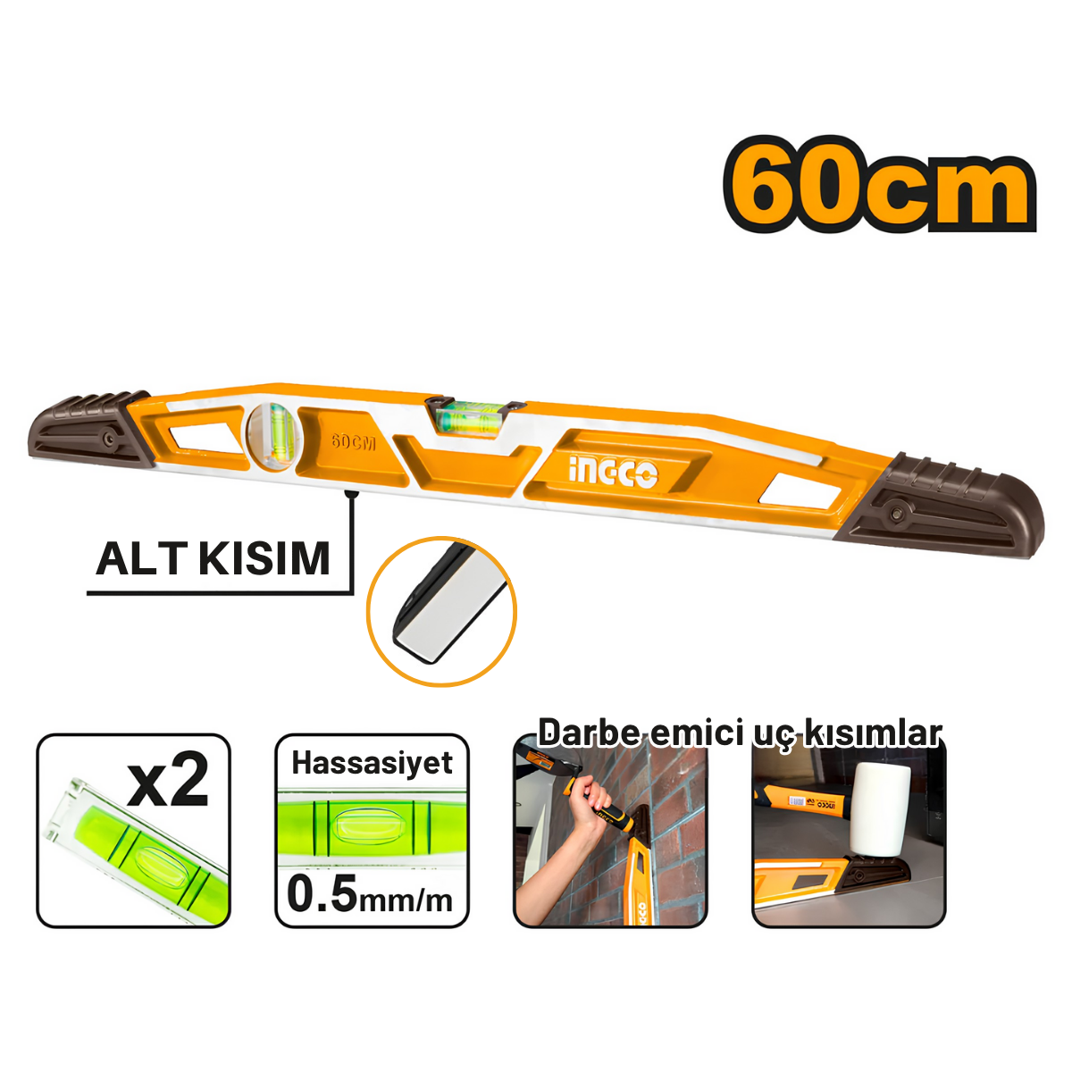 Ingco HBSL08060 60cm Endüstriyel Alüminyum Köprü Tip Su Terazisi, profesyonellerin ihtiyaç duyduğu yüksek hassasiyet, dayanıklılık ve uzun ömürlü kullanım için özel olarak tasarlanmıştır.