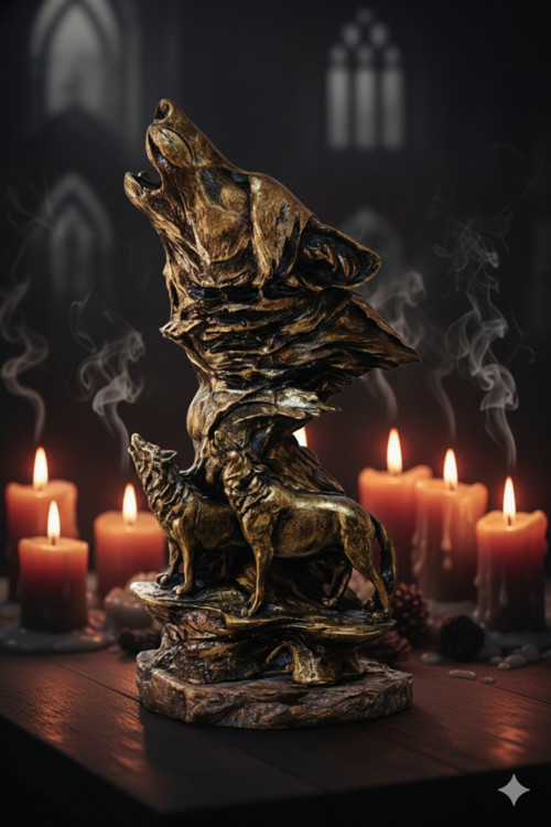 İnlakechandmade Dekoratif Kurt Heykeli 35 Cm – Metalik Gold Siyah Tasarım, Masa Üstü Ev Ofis Dekorasyonu
