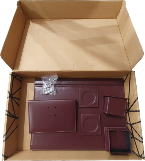 Inn Design tarafından sunulan bu şık sümen takımı, çalışma alanınıza zarafet katmak için tasarlanmıştır. Bordo rengiyle dikkat çeken bu set, ofisinizde veya evinizde profesyonel bir atmosfer yaratmanıza yardımcı olur.