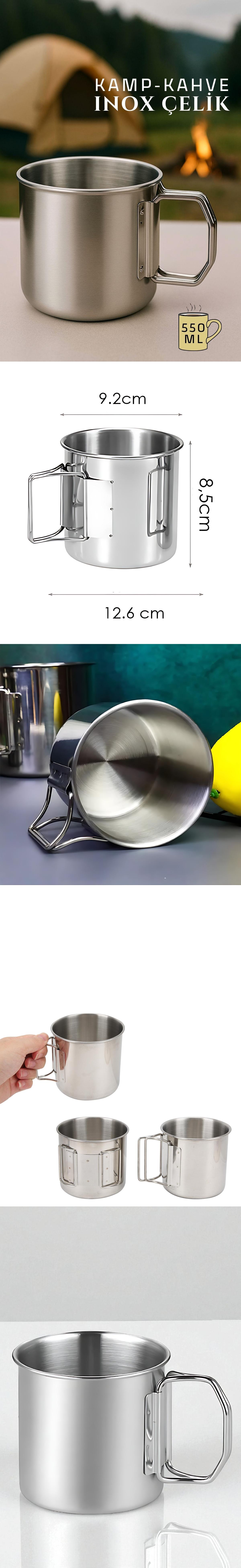 inox çelik kupa, paslanmaz çelik kamp bardağı, 550 ml çelik kupa, outdoor kahve kupası, kamp ekipmanları, paslanmaz çelik bardak, inox mug, kamp kupası fiyat, çelik kahve kupası, doğa yürüyüşü ekipmanları