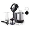 Çok Amaçlı Kullanım: Mikser, çırpıcı, yoğurma aparatı, doğrayıcı ve blender.Ana Gövde (Mikser Motoru) – Beyaz kısımdaki motor ünitesi.Paslanmaz Çelik Çırpıcı Aparatlar (2 adet) – Yumurta, krema, kek karışımı çırpmak için.Hamur Yoğurma Aparatları (2 adet, spiral şekilli) – Ekmek, pizza ve börek hamuru yoğurmak için.Paslanmaz Çelik Karıştırma Kabı – Mikserle sabit kullanım için.Ölçü Kabı (Şeffaf) – Sıvı ve kuru malzeme ölçmek için.El Blender Başlığı (Beyaz, bıçaklı) – Çorbaları, püreleri ve smoothieleri karıştırmak için.Doğrayıcı Haznesi + Bıçaklı Kapak (Şeffaf küçük kap) – Soğan, sebze, fındık, ceviz gibi yiyecekleri doğramak için.