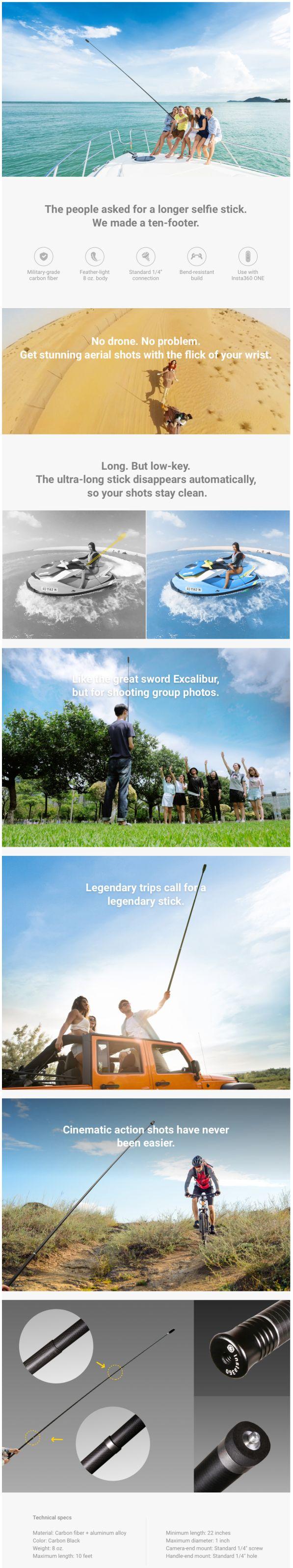 Insta360'tan ONE X ve ONE kameralar için bu teleskopik Genişletilmiş Selfie Çubuğu ile kameranızın erişimini genişletin.Insta360 Extended Edition Selfie Stick Fotokolik.com’da