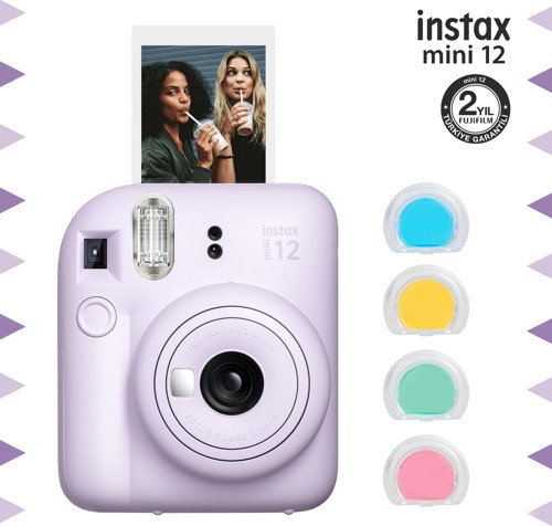 Instax mini 12 Lila Fotoğraf Makinesi ve 4'lü Renkli Lens Seti
