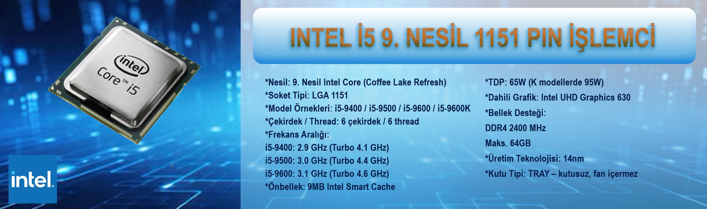 Intel Core i5 9500 3 GHz 9 MB Cache 1151 Pin Tray İşlemci