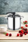 İnter Çelik Kulplu Güveç Düdüklü Tencere 18/10 Cr-Ni Paslanmaz Çelikten üretilmiştir. Özel kilit sistemi sayesinde süper emniyetli. Homojen ısı iletimi sağlayan üç kat süper kapsül taban. Sağlam Çelik kulp. Daha az zamanda oluşan yüksek basınç, pişirme süresini azaltarak enerji tasarrufu sağlar. Özenle polisajlanmış dış yüzeyi ile parlaklığını uzun süre korur.