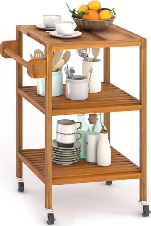 4 büyük döner tekerlek, mutfak arabasını, kullanım sırasında güvenli tutmak için 2 tekerlek üzerinde frenler ile mutfağınızdaki en uygun yere kolayca taşınmasını sağlar