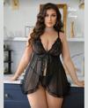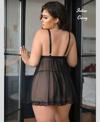 İntive lingerie-innocent&attractive Intive Curvy Siyah Önden Bağlamalı Transparan Dantel Detaylı Büyük Beden Gecelik