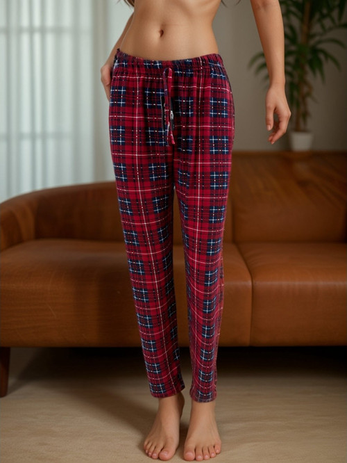 İntive lingerie-innocent&attractive Lindros Kırmızı Siyah Ekose Desen Geniş Beden Seçenekli Kadife Pamuk Pijama Altı (S-4XL)
