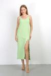 - Fıstık yeşili rengiyle dikkat çeken gecelik, zarif bir görünüm sunar.